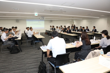 概要説明があり、続いて、同拠点の貝淵弘三教授から、事業におけるこれまでの取り組みや進捗、