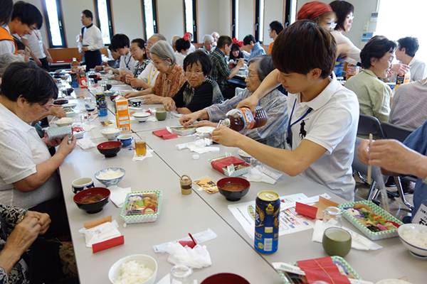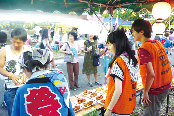 教職員と学生は、特別改修済みの2DK〜に住みます(家賃最大2割引き、家賃3万2千円〜は周辺相場の約半額)。入居条件は自治会やまちかど保健室の行事に参加すること。行事には、健康体操、清掃、災害時炊き出し訓練、夏祭り、防災訓練、文化祭といった自治会イベントや、豊明高校生徒との合同イベント、学生企画の高齢者買い物支援、子ども寺小屋などがあります。
