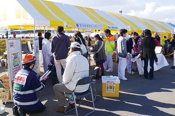 本学では医療を通して社会のニーズを捉え、地域社会との連携を進めて教育・研究の成果を地域に還元しています。市民対象の公開講座や、子育て応援イベントのブース出展、学生による地域イベントへの参加などを実施しています。