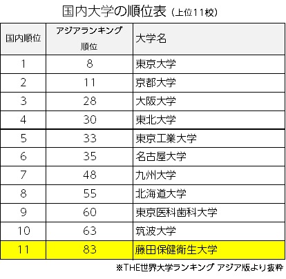 THE世界大学ランキング アジア版で《83位》にランクインしました