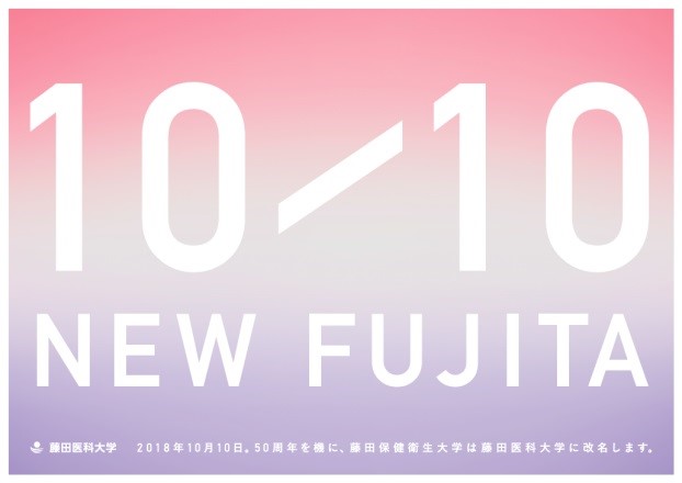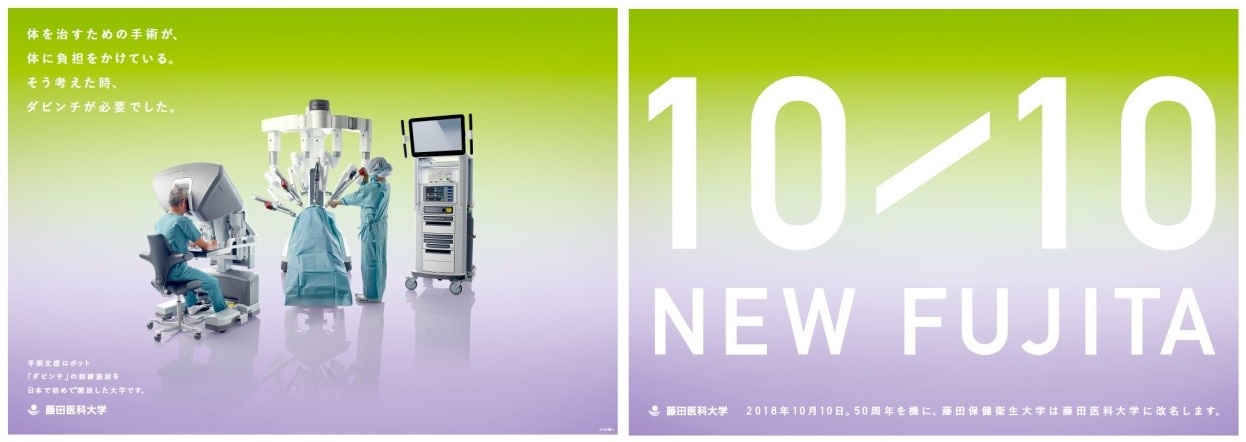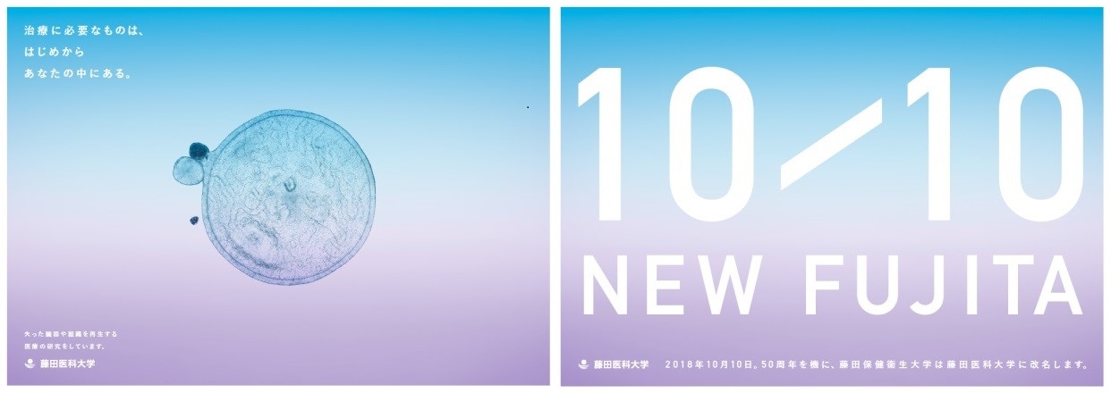 藤田保健衛生大学は、大学開学50周年を迎える10月10日に校名を「藤田医科大学」に変更し、医学・医療のイノベーションの実現に向けて新たな歴史の一歩を歩み始めます。それを契機として、本年9月より来年2月にかけて、藤田のブランドメッセージを伝える広告シリーズを制作して全国に発信いたします。