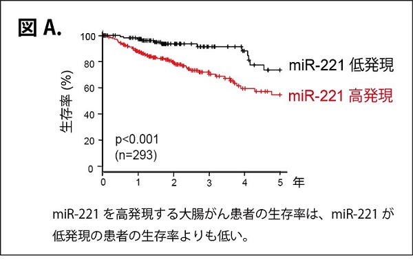 ・大腸がん患者の「がん幹細胞」では、マイクロRNA miR-221が高発現していることを見出しました。