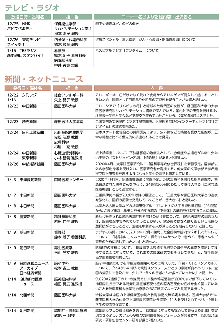 本学園の取り組みや研究・医療ニュース等に関する記事の掲載、教職員のTV出演情報です。