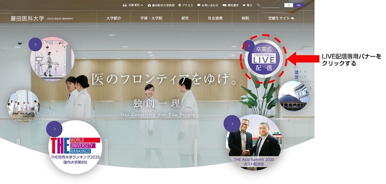 <視聴方法>藤田医科大学ホームページ(http://www.fujita-hu.ac.jp/)のトップページ
