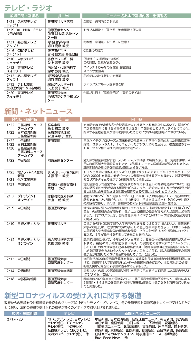 2020年1月21日~2月20日の報道一覧