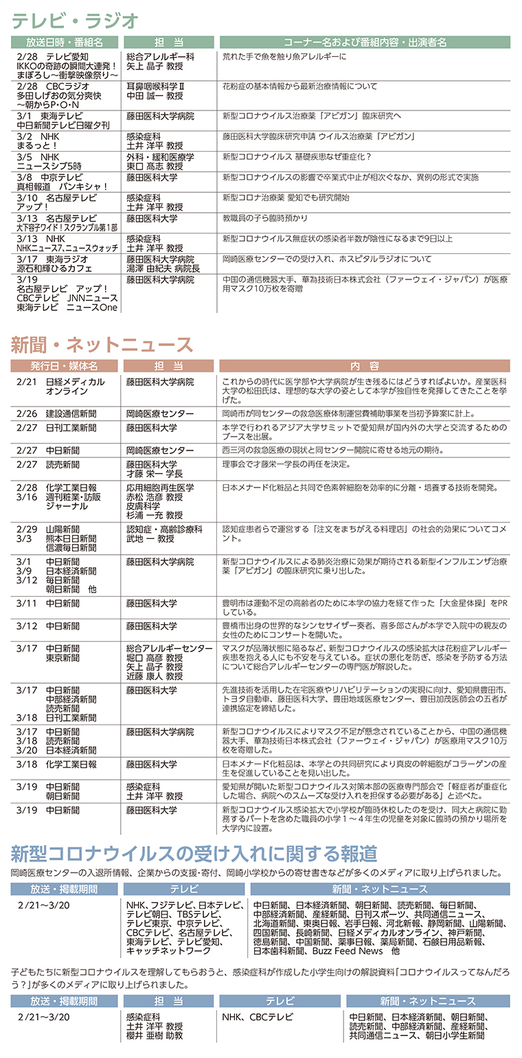 本学園の取り組みや研究・医療ニュース等に関する記事の掲載、教職員のTV出演情報です。