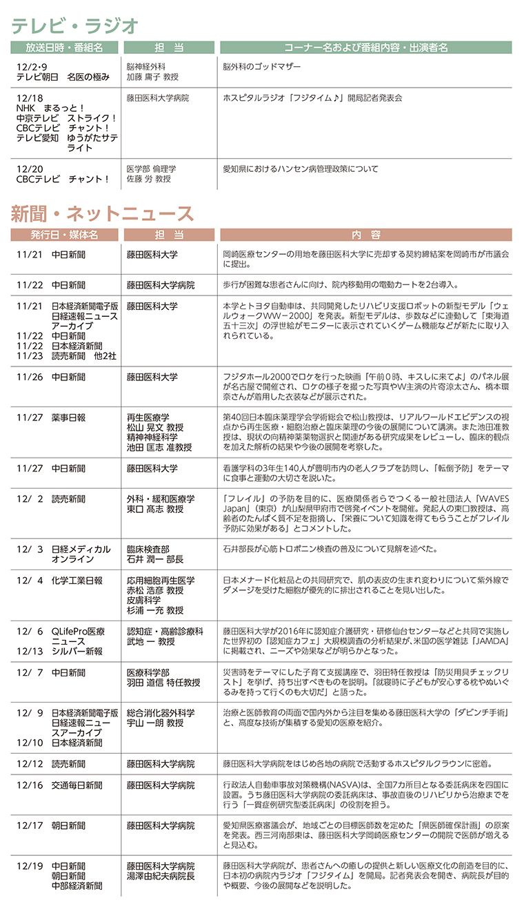 本学園の取り組みや研究・医療ニュース等に関する記事の掲載、教職員のTV出演情報です。