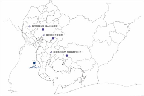 藤田学園は、愛知県と共同して、ビジネスにおける国際的な人の往来再開に向けた段階的措置に協力するため、2020年10月12日より藤田医科大学病院(豊明市)、藤田医科大学ばんたね病院(名古屋市中川区)、藤田医科大学岡崎医療センター(岡崎市)の3病院にてビジネス渡航者向けのPCR検査および証明書の発行を実施いたします。特に、今回、中部国際空港内で搭乗当日に陰性証明書を受け取れる仕組みを設けることにより、国際便利用者の利便性向上に貢献いたします。