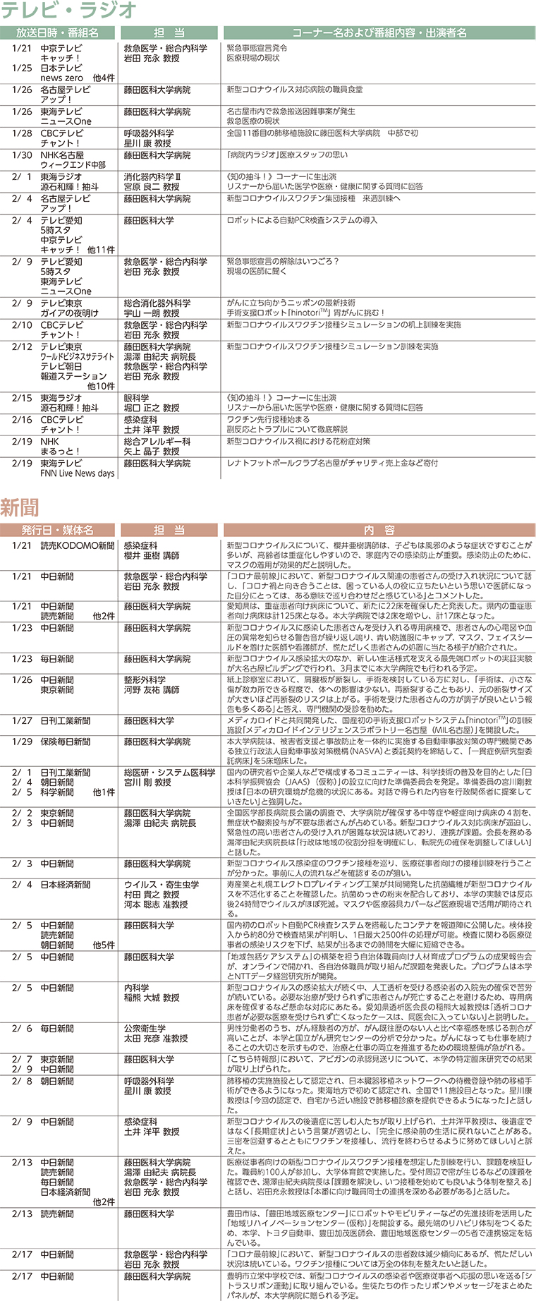 本学園の取り組みや研究・医療ニュース等に関する記事の掲載、教職員のTV出演情報です。