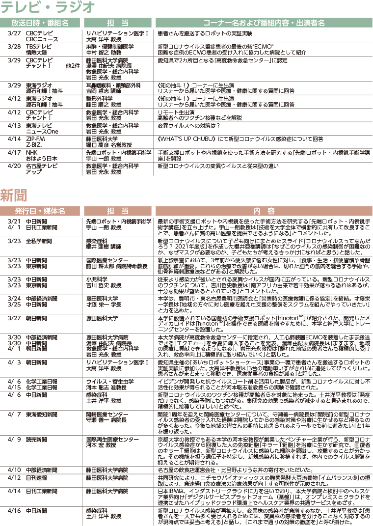 本学園の取り組みや研究・医療ニュース等に関する記事の掲載、教職員のTV出演情報です。