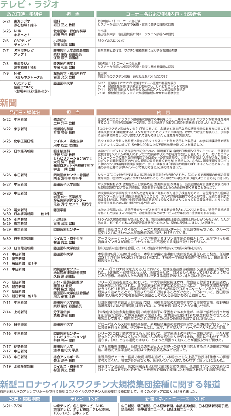 本学園の取り組みや研究・医療ニュース等に関する記事の掲載、教職員のTV出演情報です。