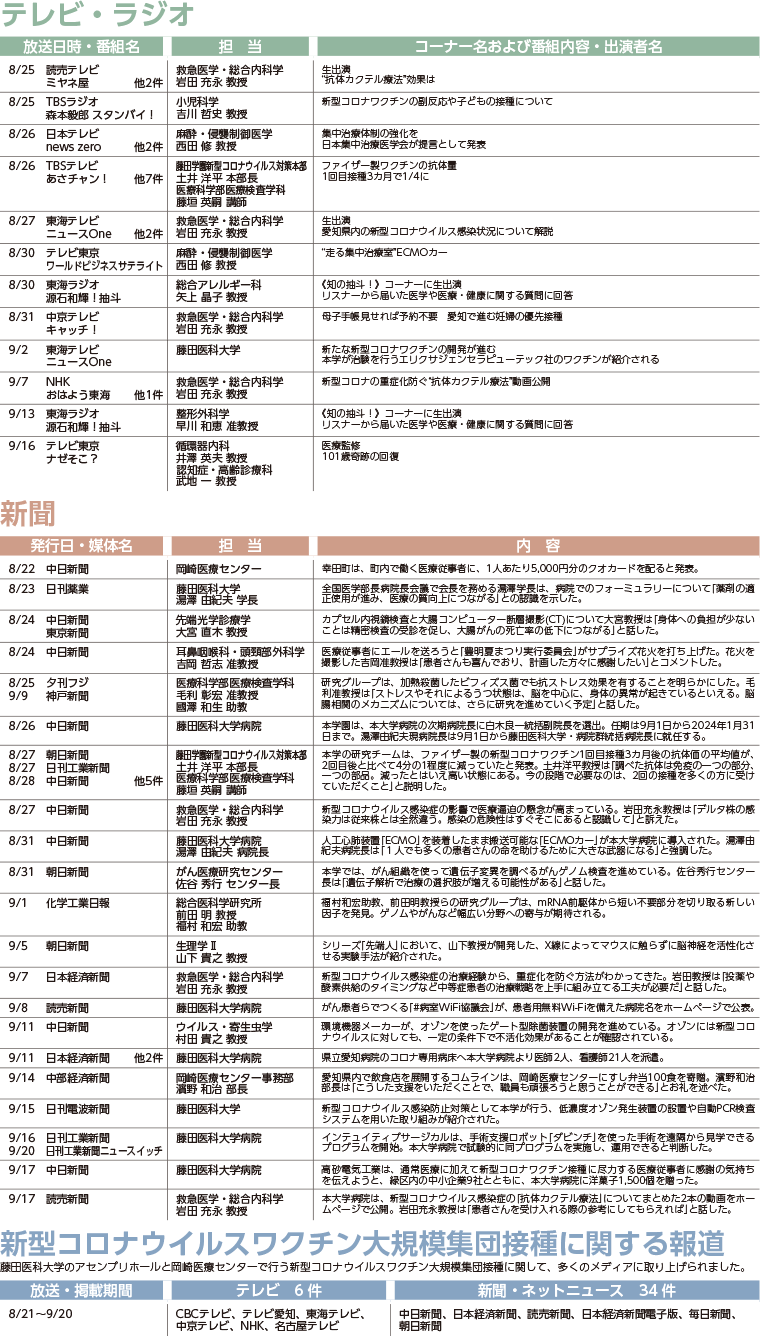 本学園の取り組みや研究・医療ニュース等に関する記事の掲載、教職員のTV出演情報です。