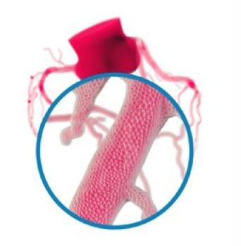 〈図 2〉細かなメッシュ(網の目)による冠動脈 の3D モデルを作成し、スーパーコンピュータ ーを用いた仮想空間での血流シミュレーション を行います