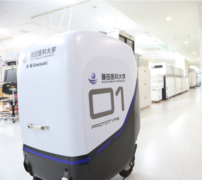 本学と川崎重工業株式会社は、政府が提唱するSociety5.0の具現化に向け本学がめざすスマートホスピタル構想実現に向けた取り組みの一つとして、2021年10月23日より藤田医科大学病院にてサービスロボットの実証実験を開始します。本実証実験では、川崎重工のサービスロボットを藤田医科大学病院内のインフラ・ITシステムと連携させ、安全・安心を確保しながら検体や医薬品などの院内の物資搬送に活用することをめざします。院内の物資搬送から実証実験を開始し、将来的には院内の誘導や買い物代行など、活用の幅を順次拡大予定。2022年度に藤田医科大学病院での導入をめざし、病院内での運用を視野に入れた実証実験を進めていきます。