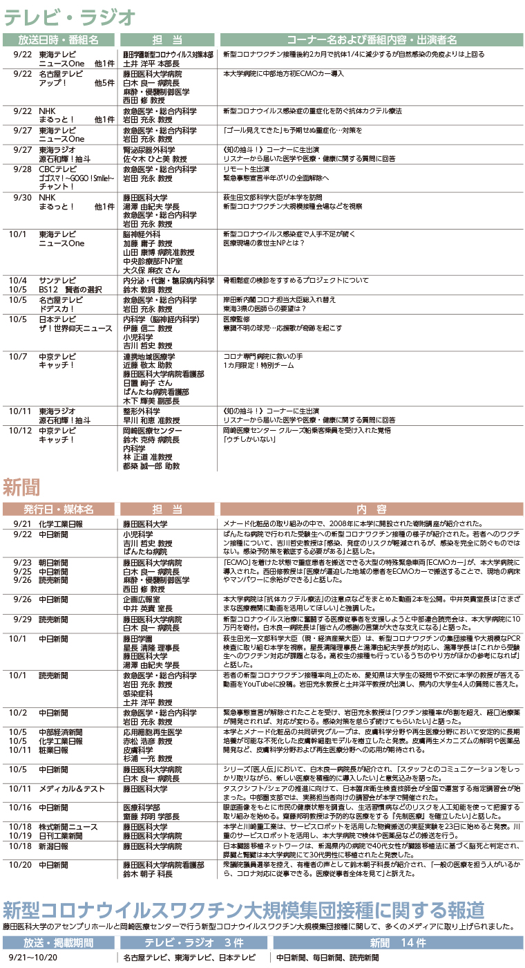 本学園の取り組みや研究・医療ニュース等に関する記事の掲載、教職員のTV出演情報です。