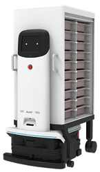 エレベーター連携を行い、薬剤部門から関連部門への複数フロアでの薬剤の搬送。