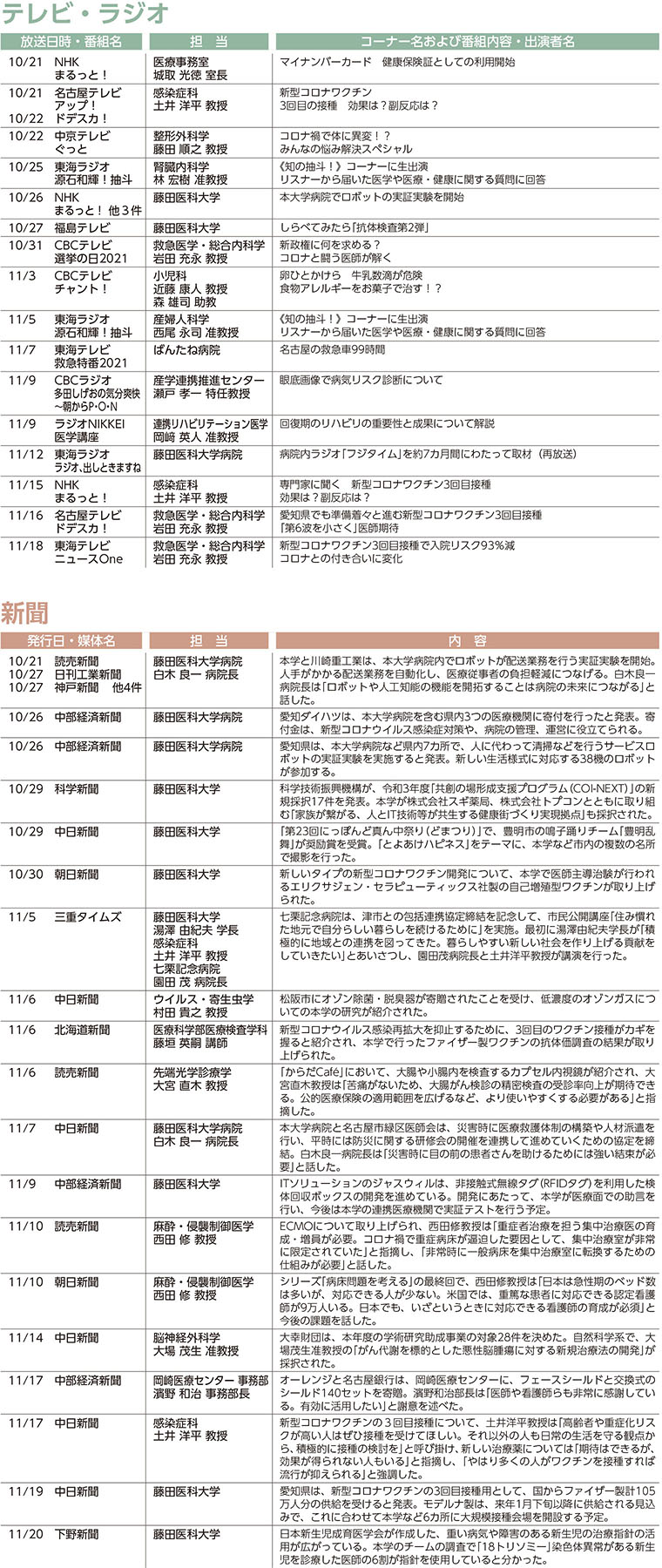 本学園の取り組みや研究・医療ニュース等に関する記事の掲載、教職員のTV出演情報です。