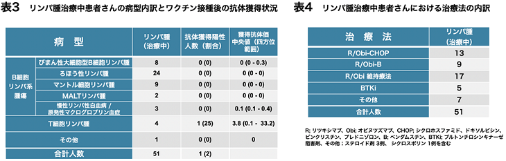 (2)特に、リンパ腫治療中および治療後まもない患者では、ワクチン接種後の抗体獲得が困難であることを確認しました。