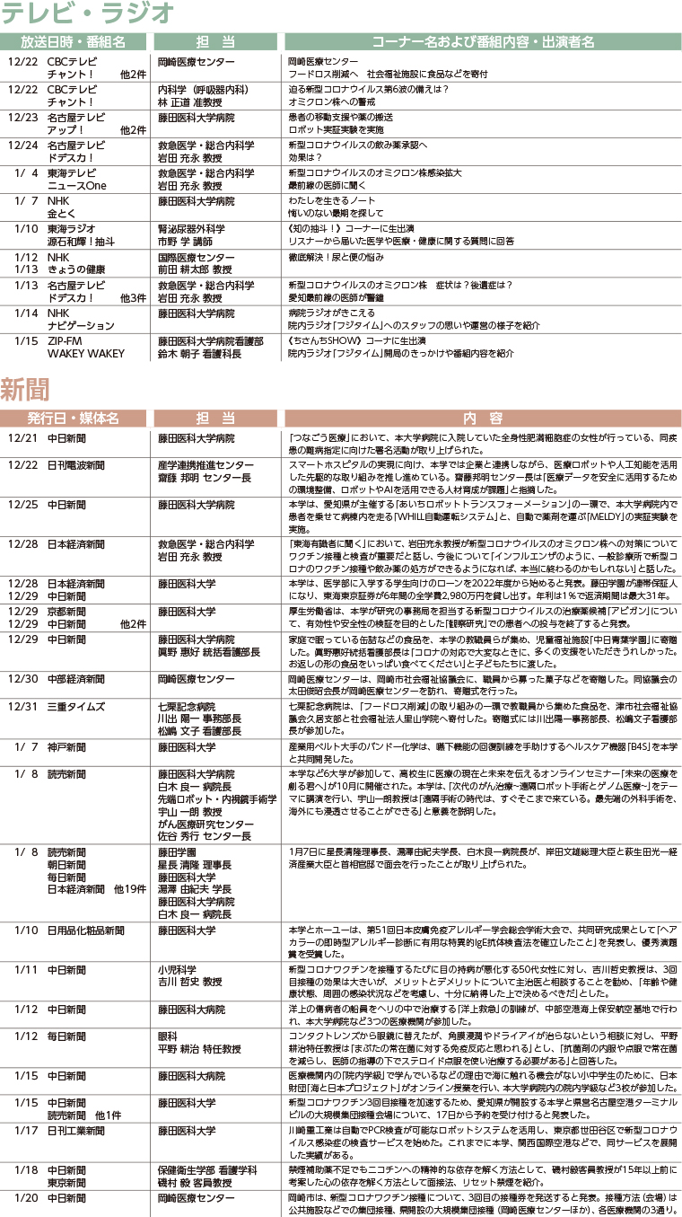 本学園の取り組みや研究・医療ニュース等に関する記事の掲載、教職員のTV出演情報です。