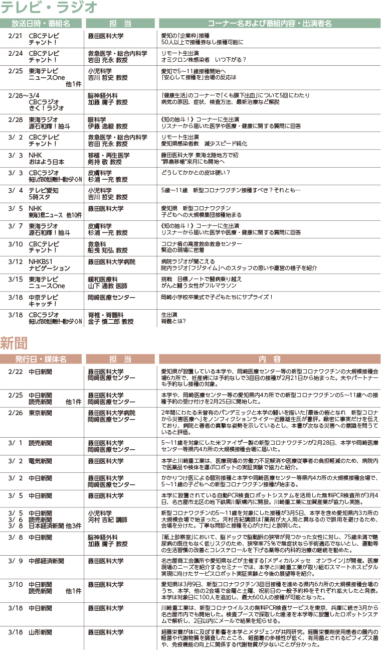 本学園の取り組みや研究・医療ニュース等に関する記事の掲載、教職員のTV出演情報です。