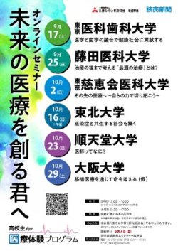藤田医科大学は、高校生に現在と未来の医療を伝えるオンラインセミナー「未来の医療を創る君へ」に参加します。