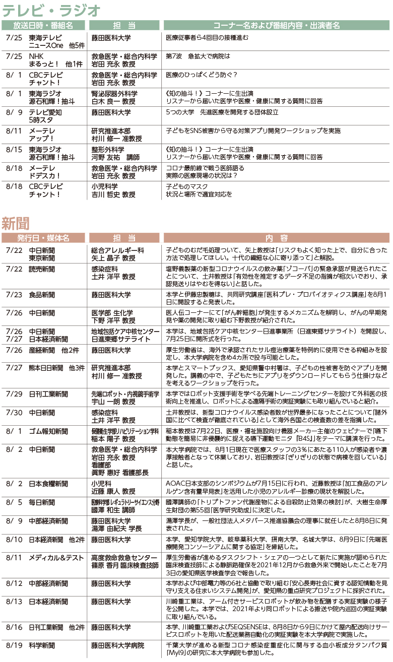 本学園の取り組みや研究・医療ニュース等に関する記事の掲載、教職員のTV出演情報です。
