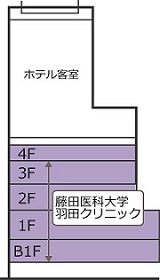センターは、「HANEDA INNOVATION CITY」ZONE Aに設置。地下1階から3階が藤田医科大学羽田クリニックとなり、4階には医療関連企業との産学連携による研究室や細胞培養施設を設けるほか、立位CTや手術支援ロボットhinotori等、最新の医療機器を展示します。