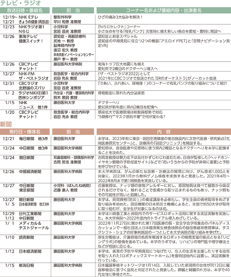 本学園の取り組みや研究・医療ニュース等に関する記事の掲載、教職員のTV出演情報です。