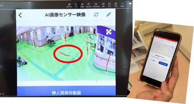 同機は、カメラで捉えた歩行者等の人物画像を、センサー内部で棒人間へと変換処理し、その座標点をもとにAIが転倒や異常などを検知。危険と判断すると警備員等に現場への駆け付けを依頼するシステムです。