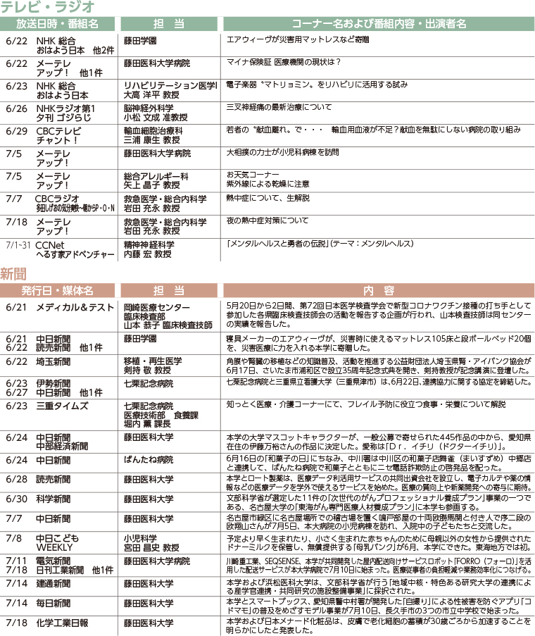 本学園の取り組みや研究・医療ニュース等に関する記事の掲載、教職員のTV出演情報です。