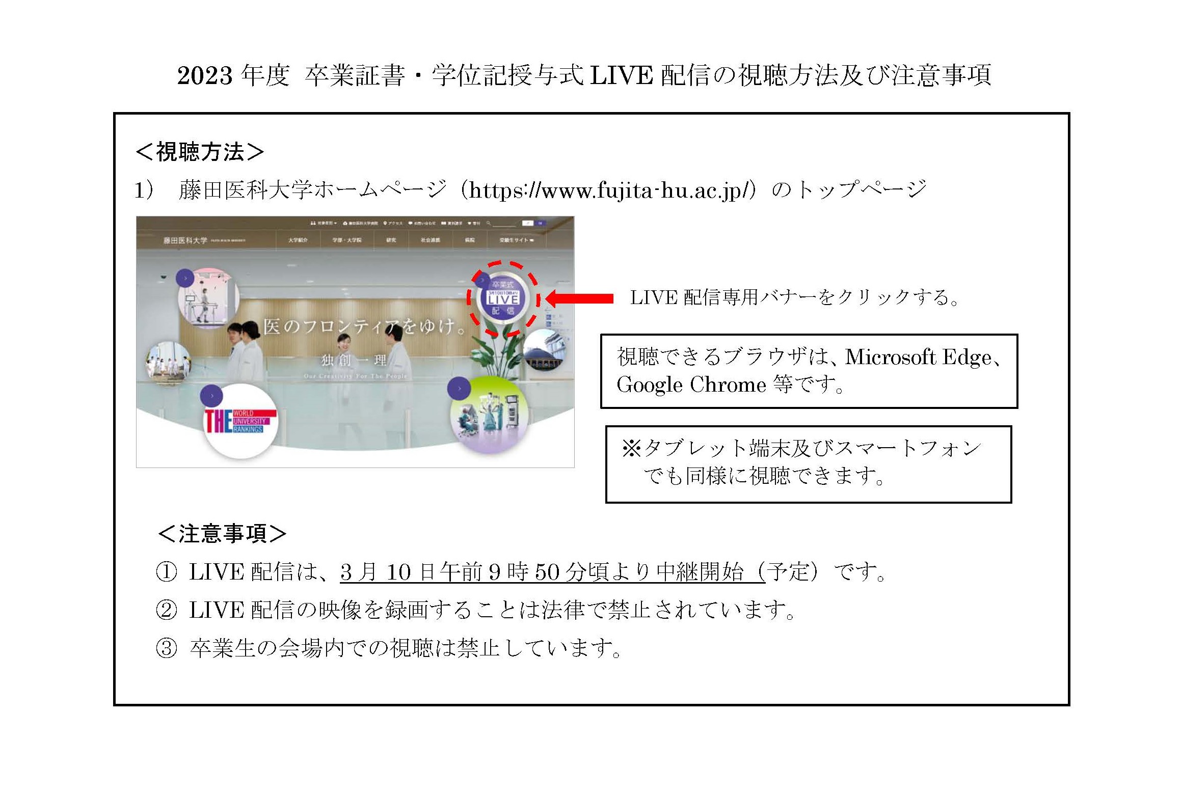 2023年度藤田医科大学卒業証書・学位記授与式を下記のとおり挙行いたします。