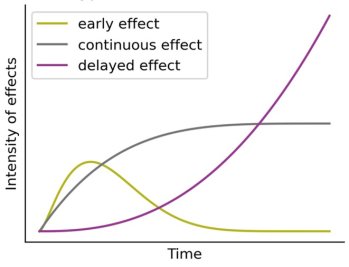 脊髄損傷ラットの患部にHGFを投与して2日目と7日目の検体を用いて網羅的に遺伝子転写産物を解析できるRNA-seq(注4)データを取得し、その解析をおこないました。本研究では、HGFの効果が時系列的に変化する可能性についても考慮するため、各タイムポイントにおけるHGFの影響を2日目の効果(early effect)・7日目の効果(delayed effect)・共通部分(continuous effect)の3つに分解し、それらを個別に評価可能なデータ分析方法を考案しました。解析の結果、先行研究と同様に神経再生や抗炎症作用などを示す遺伝子発現の変化が見られました。一方で、2日目の効果・7日目の効果・共通部分の3グループにおいて発現量に変化のあった遺伝子のうち、神経再生や抗炎症作用などの機能に関連する遺伝子の数を比較したところ、2日目の効果・共通部分・7日目の効果の順に数が増えていくという結果が得られました。このことから、HGFの脊髄損傷治療効果は2日目から7日目にかけて増強され、次第に多くの遺伝子が動員されることで神経再生や抗炎症などの作用が発揮されることがわかりました。