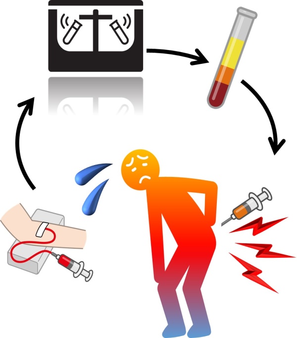 一方、PRP(Platelet-Rich Plasma:多血小板血漿)療法は、近年注目を集めている再生医療の一つです。特に、この方法はスポーツ傷害、関節炎、皮膚の再生など、幅広い医療分野での応用が進んでいます。PRP療法では、まず患者さんから血液を採取し、それを遠心分離機にかけて血小板を濃縮します。血小板には、傷の治癒プロセスを促進する成長因子や炎症を抑えるような因子を豊富に含んでいますので、この濃縮された多血小板血漿(PRP)を患部に注入することで組織の修復を促すことが知られています。PRP療法の大きな利点は、患部に注射で投与できるため、患者さんへの侵襲度が低いこと、また、患者さん自身の血液から採取するため、アレルギーや拒絶反応のリスクが極めて低いことが特徴です。PRP療法の効果は、損傷の程度や治療される疾患の種類によって異なりますが、多くの研究でその有効性が示されています。しかしながら、Modic変性タイプ1を伴う腰痛患者さんに対するPRP療法の安全性と有効性に関しては、これまでよく分かっていませんでした。