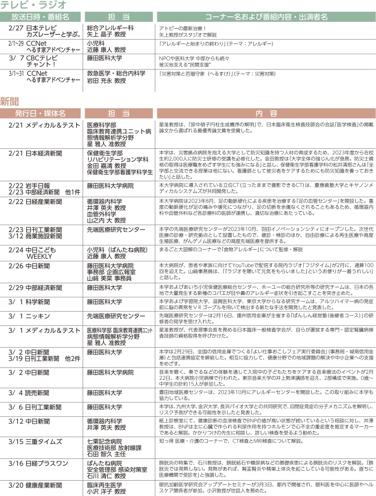 本学園の取り組みや研究・医療ニュース等に関する記事の掲載、教職員のTV出演情報です。