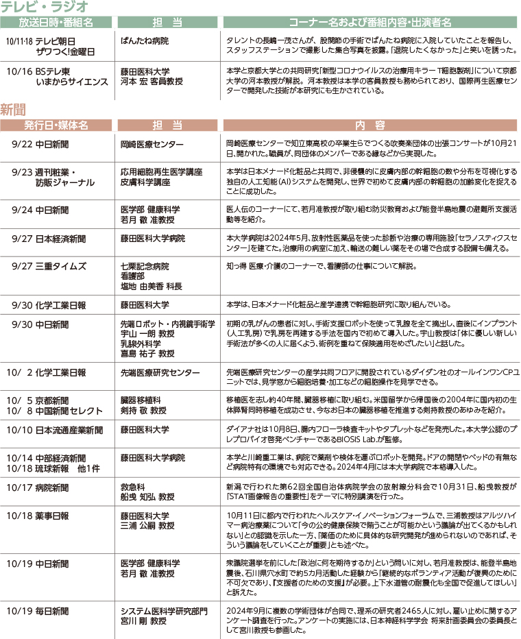 本学園の取り組みや研究・医療ニュース等に関する記事の掲載、教職員のTV出演情報です。