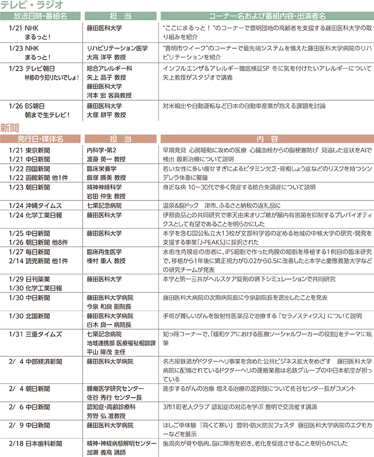本学園の取り組みや研究・医療ニュース等に関する記事の掲載、教職員のTV出演情報です。