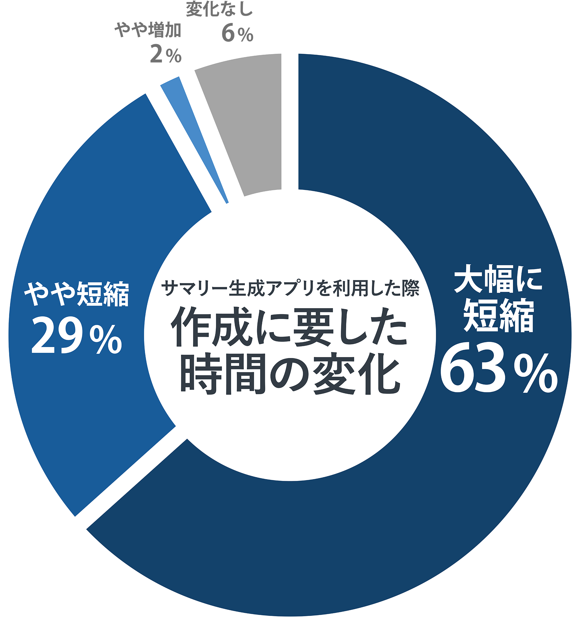 2025年3月に行ったアンケート調査(医師170名、複数回答あり)では、「退院時サマリー作成支援システム」を使用している医師の92%が「時間短縮、業務改善につながった」、81%が「満足」と答えました。導入後3カ月の累計短縮時間は約1,000時間に及んでおり、働き方改革が進んでいることがうかがえます。