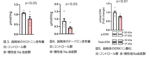 - 慢性低Na血症により、扁桃体のExtracellular signal-regulated kinase (ERK)※3のリン酸化が低下することを証明。