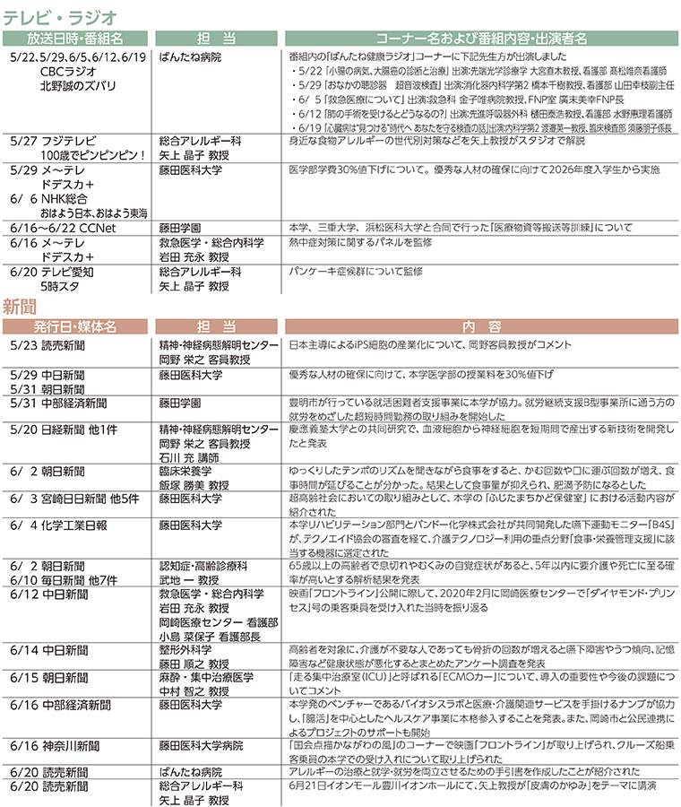 本学園の取り組みや研究・医療ニュース等に関する記事の掲載、教職員のTV出演情報です。