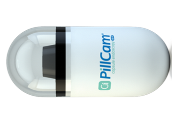 小腸カプセル内視鏡は以下の写真のように大きさ26.2×11.4mm、重さ3.0gの片側にカメラがついたカプセル内視鏡。苦痛や放射線被曝なく、飲み込むだけで小腸全域の内視鏡検査ができるのが特徴。以前は「暗黒大陸」といわれた小腸領域にパラダイムシフトをもたらした画期的な内視鏡である。