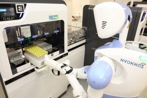 藤田医科大学(以下、藤田医大)と川崎重工業株式会社(以下、川崎重工)は、医療従事者の負担軽減・業務効率化による、質の高い医療の持続的提供の実現に向けた取組みとして、藤田医科大学 岡崎医療センター(愛知県岡崎市)にて、川崎重工の屋内配送用サービスロボット「FORRO(フォーロ)」とアーム付き自律走行型サービスロボット「Nyokkey(ニョッキー)」の2種類のサービスロボットを連携させた実証実験に成功しました。なお、今回の成功は、ロボットの連携による臨床検体の配送から臨床検査機器への投入までの自動化を実現した世界初の事例※です。