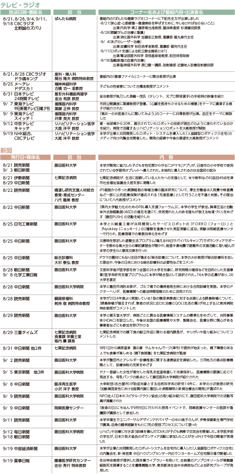 本学園の取り組みや研究・医療ニュース等に関する記事の掲載、教職員のTV出演情報です。