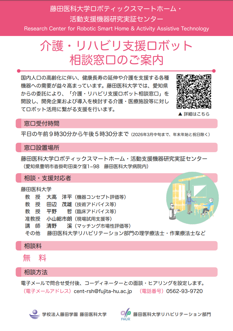 藤田医科大学リハビリテーション部門は,2019年度から継続して,愛知県の「介護・リハビリ支援ロボット活用促進事業」の委託業務者に選定されました.