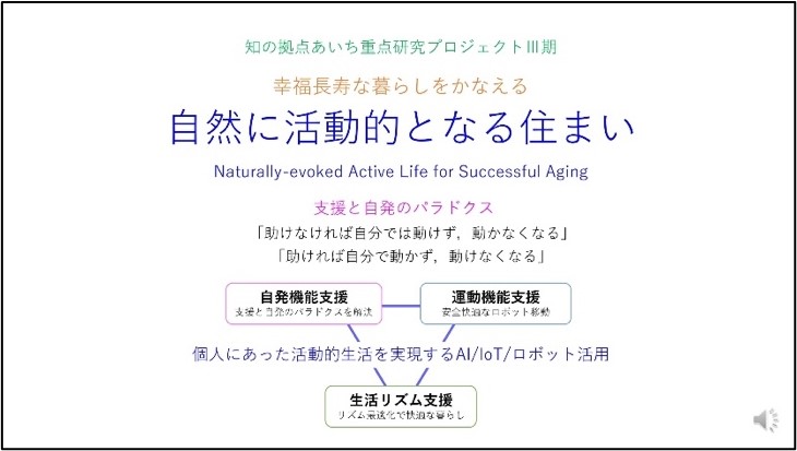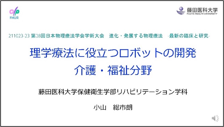 小山センター員が特別講演で,「理学療法に役立つロボットの開発:介護・福祉分野」をテーマに講演しました.本センターの取り組みの一つとして,愛知県の事業である「知の拠点あいち重点研究プロジェクトⅡ期」と「知の拠点あいち重点研究プロジェクトⅢ期」の研究成果の一部を紹介しました.