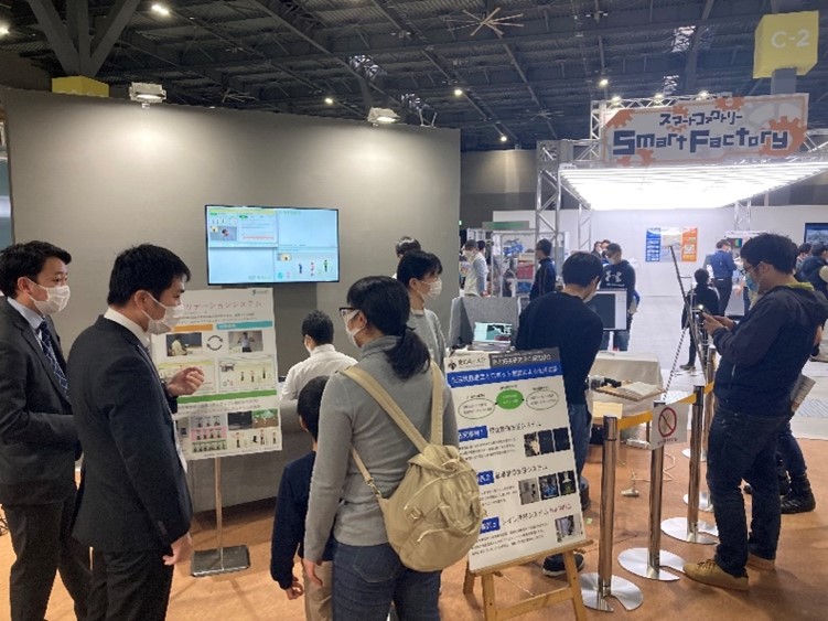 展示エリアでは,愛知県の事業である「知の拠点あいち重点研究プロジェクトⅡ期」と「知の拠点あいち重点研究プロジェクトⅢ期」の研究成果である,生活支援ロボットや遠隔リハビリテーションシステム,横移乗支援ロボットなどを展示しました.会期中の来場者は1,200名を超え,多くの方々に見学いただきました.