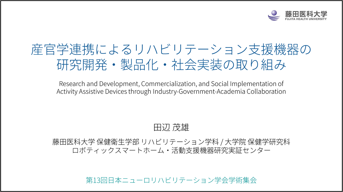 第13回日本ニューロリハビリテーション学会学術集会で「知の拠点あいち重点研究プロジェクト」について紹介しました