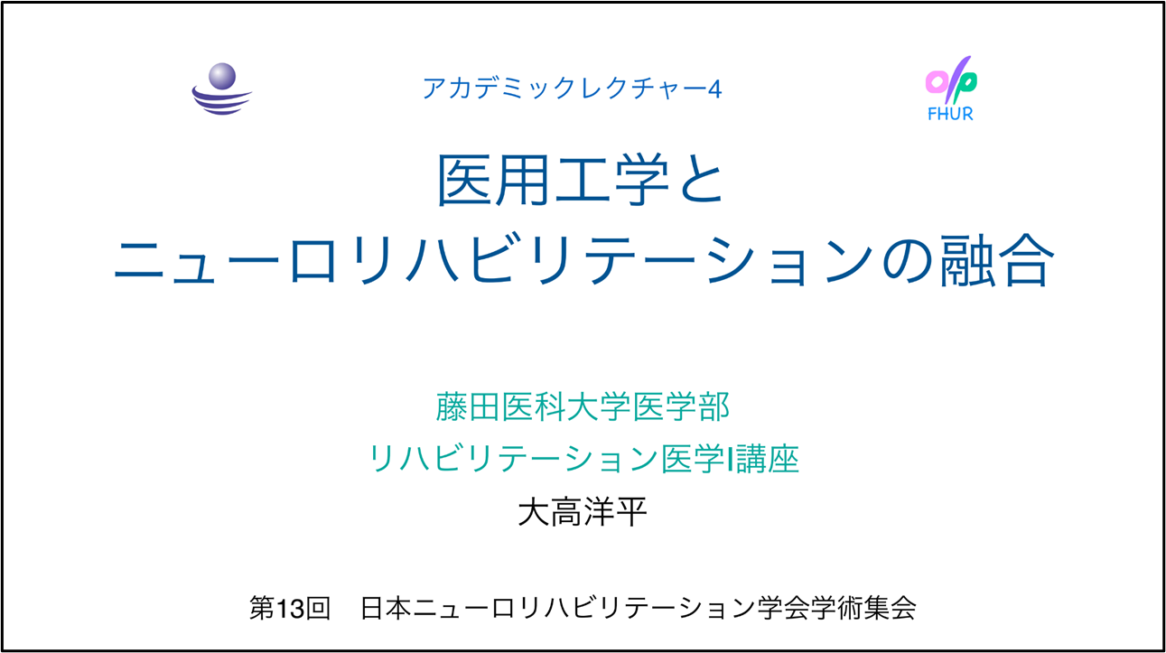 大高センター長がアカデミックレクチャー「医用工学とニューロリハビリテーションの融合」に演者として登壇しました.本センターの取り組みの一つとして,愛知県の事業である「知の拠点あいち重点研究プロジェクトⅡ期」と「知の拠点あいち重点研究プロジェクトⅢ期」の研究成果の一部を紹介しました.