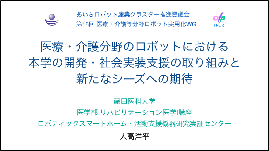 2022/2/15(火)に,あいちロボット産業クラスター推進協議会が主催する,第18回 医療・介護等分野ロボット実用化ワーキンググループが,オンラインで開催されました.