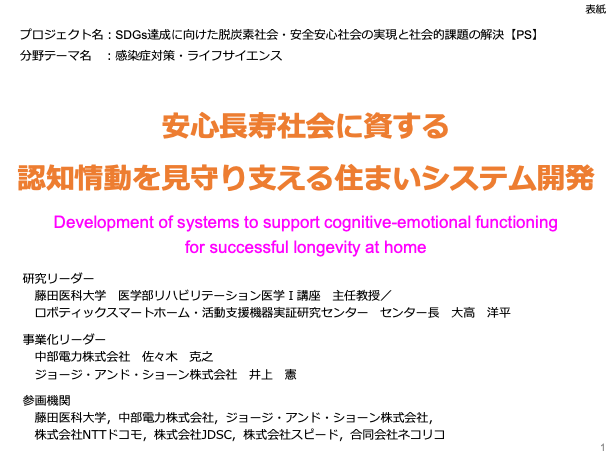 大高センター長が研究テーマ「安心長寿社会に資する認知情動を見守りさせる住まいシステム開発」の概要と展望について発表を行いました.