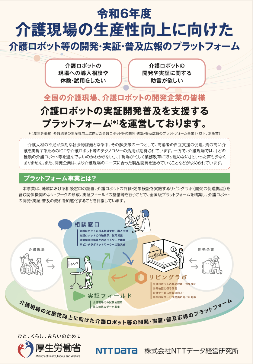 本センターは,厚生労働省の「介護ロボットの開発・実証・普及のプラットフォーム事業」の機関として参画しています.